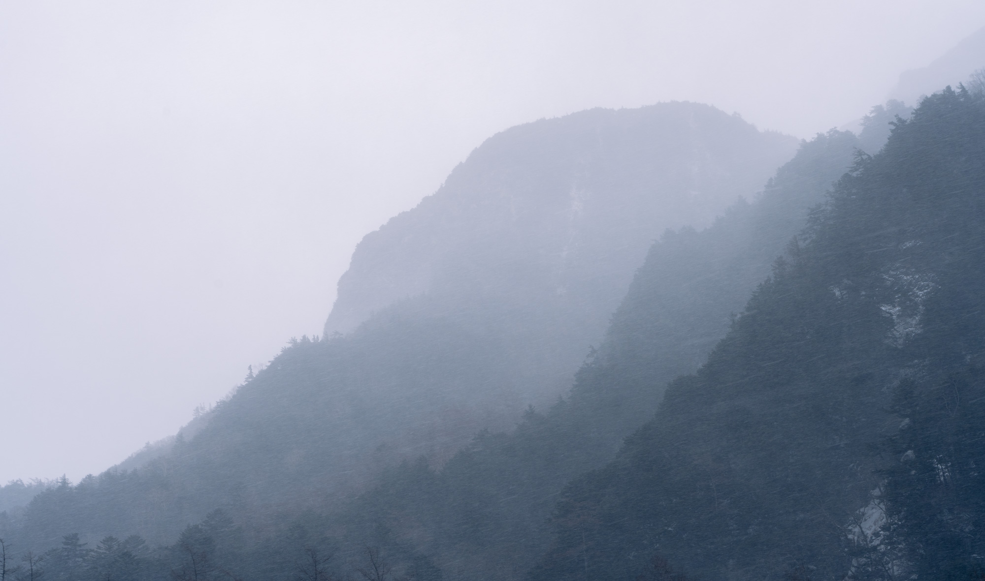 The snow started to pick up shortly after I came out of the tunnel. My first thought was, I can never trust mountain forecasts. I’d only been expecting partly cloudy skies and a light dusting of snow. Instead, the snow came down hard, and the wind cut straight through my fleece.